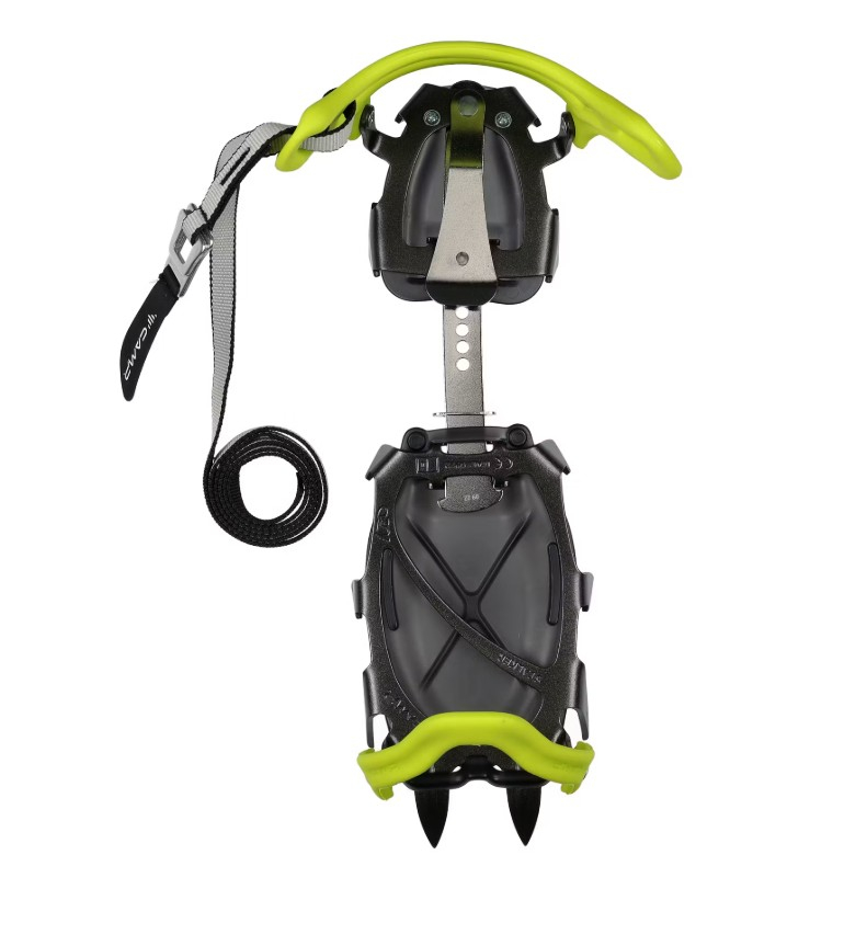 O potrivire precisa este posibila datorita fixarii cu curele. Crampoanele sunt, de asemenea, echipate cu tampoane anti-zapada, care impiedica acumularea de zapada compactata sub talpa bocancului. Constructia traditionala din otel cromat rezista in timp, iar fixarea universala cu material termoplastic la calcai si varf este usor si rapid de pus. Cea mai noua versiune, actualizata din punct de vedere al profilului frontal si al curelei pentru a se potrivi tipurilor de bocanci moderne. Modelul se potriveste cu usurinta marimilor de incaltaminte de la 36 la 48.