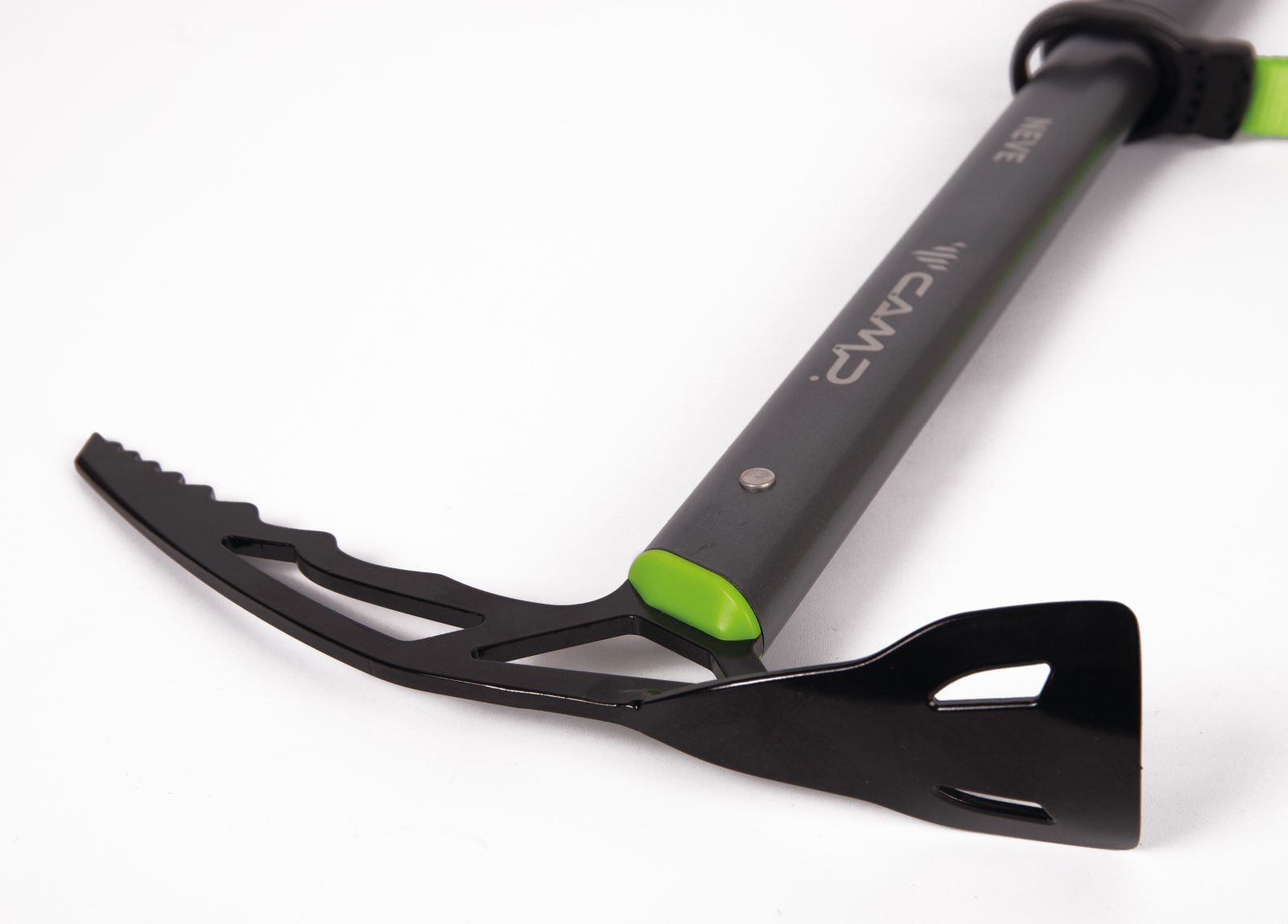 Neve este un piolet clasic si de incredere pentru alpinism si calatorii pe ghetar. Capul din otel cromoly forjat are un design ergonomic pentru o prindere sigura si un confort bun.