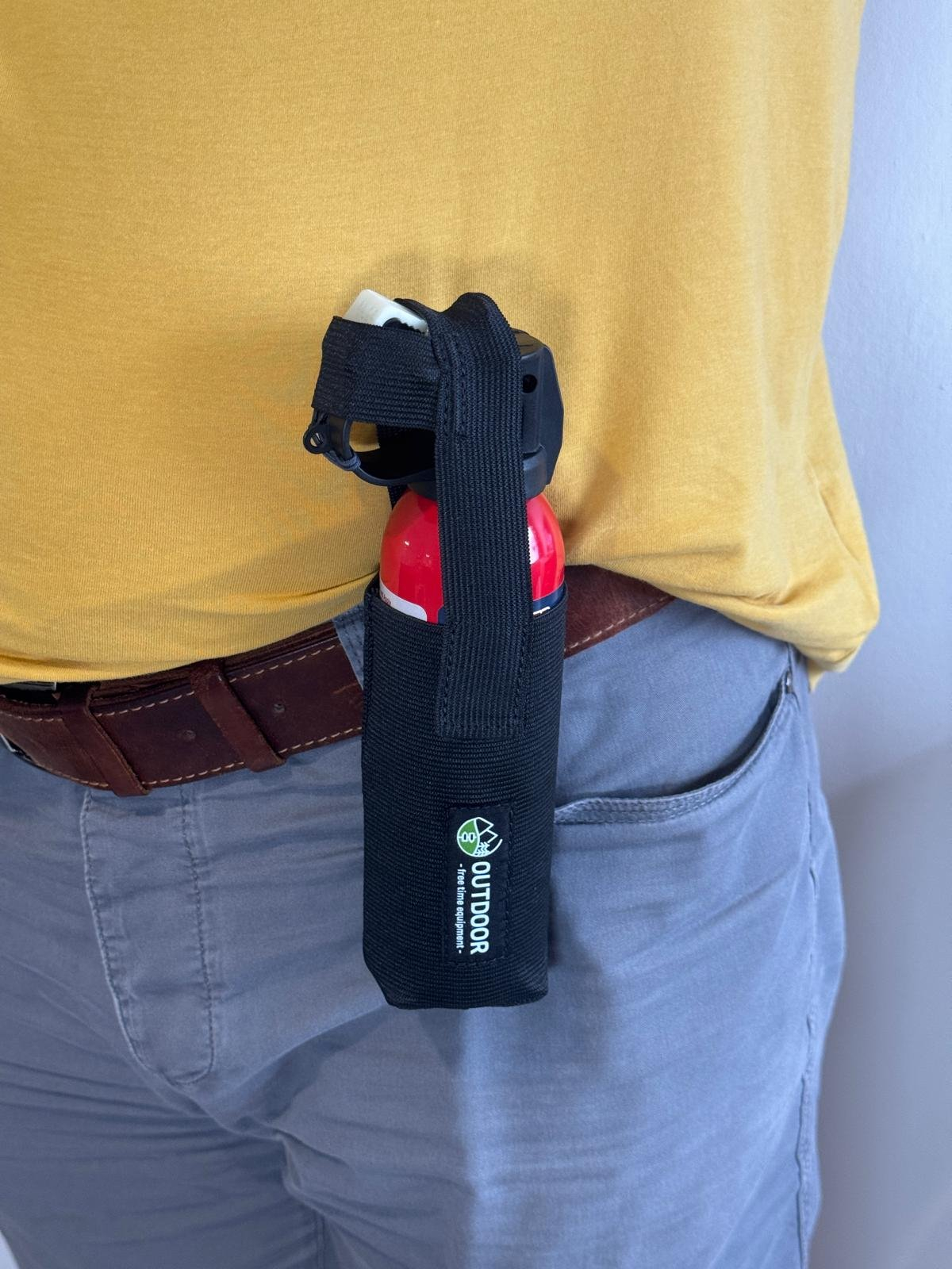 Pastreaza sprayul anti-urs mereu la indemana cu husa universala Outdoor pentru spray de urs! Fabricata din nylon rezistent si dotata cu sistem de inchidere cu arici, aceasta husa asigura fixarea sigura a spray-ului de urs pe cureaua / centura de la pantaloni sau pe chingile rucsacului. Ideala pentru drumetii, camping si aventuri in natura.